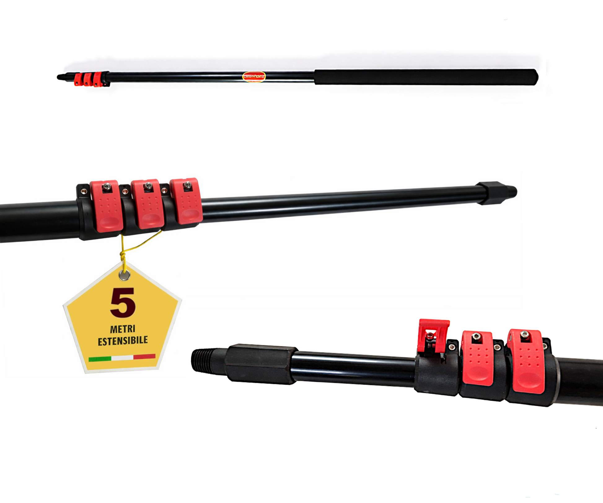 - 🪶 Leggera, ergonomica ed estensibile fino a 5 metri, grazie all’impugnatura Soft-Grip, offre una presa confortevole e sicura anche durante sessioni prolungate. Perfetta per raggiungere facilmente le superfici più elevate. 🪶